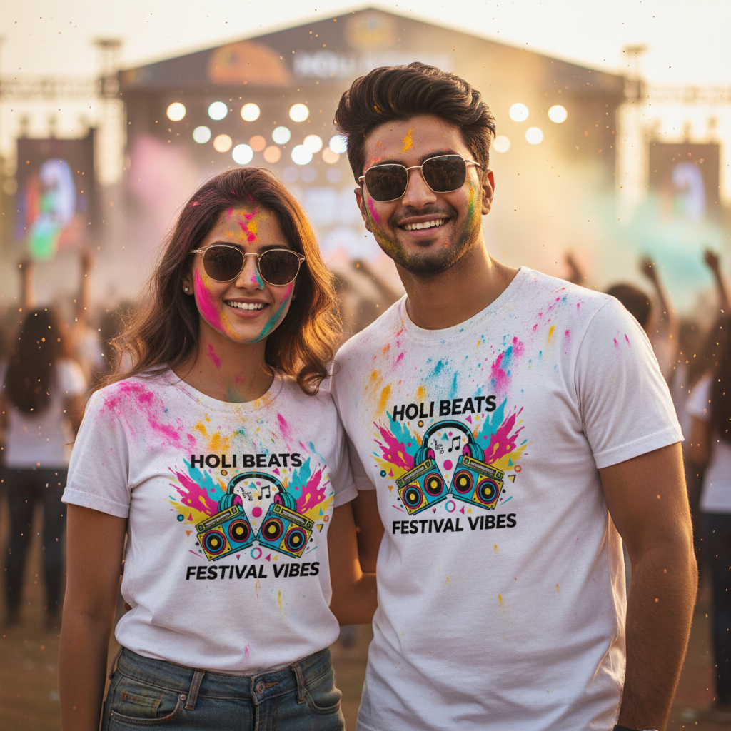 Q: Are these suitable as couple matching Holi t shirts? A: Definitely! The "Holi Beats" design is a favorite for Holi couple t shirts, offering a coordinated, aesthetic look for partners who want to match their festival energy.